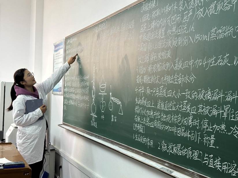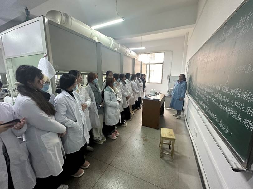 为全面提高教学质量,深化课堂教学改革,充分发挥优秀教师的示范引领作用,促进教师之间教学经验、教学方法等的学习交流,落实立德树人根本任务,引导高校教师潜心教书育人,进一步提高我院教师的教育教学水平。化学与环境工程学院组织开展2023-2024-1学期第二次公开课活动,12月1日下午5-8节课我院王霞老师在材化楼1206-1实验室开设了《有机化学实验》公开课。我院实验中心主任杨丽、学院督导组成员陈璘涵和部分教师观摩了课程。