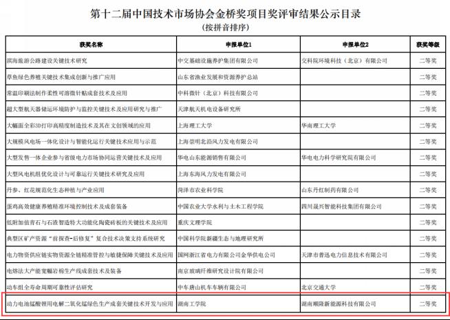 近日,第十二届中国技术市场协会金桥奖获奖名单发布。由化环学院娄晓明院长牵头的“动力电池锰酸锂用电解二氧化锰绿色生产成套关键技术开发与应用”项目荣获第十二届中国技术市场协会金桥奖二等奖。该项目英国上市公司官网365为第一申报单位,校企合作企业湖南顺隆新能源科技有限公司为第二申报单位。