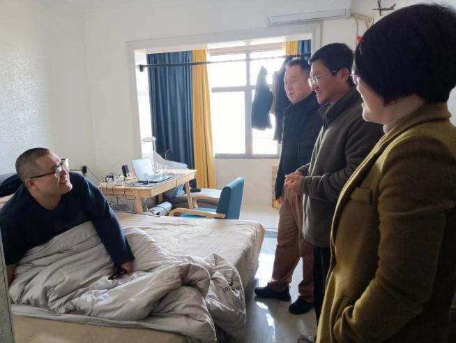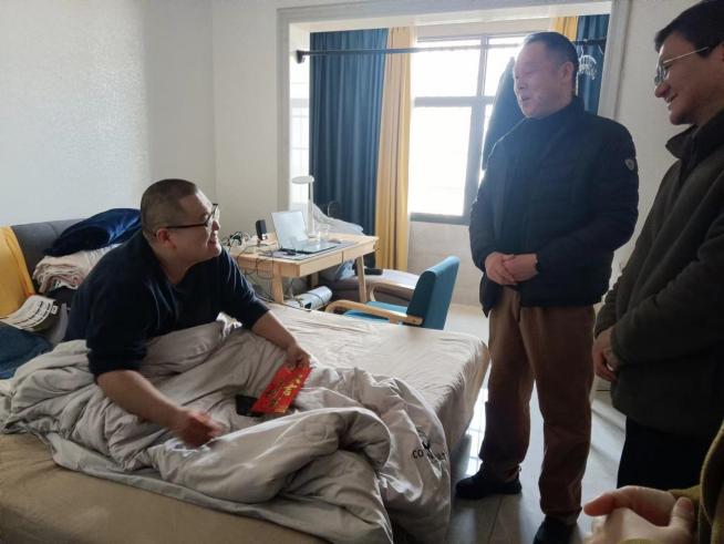 党委书记李来丙、院长娄晓明来到赵风君老师家里,详细了解他的生活情况和身体健康状况,认真听取困难诉求,嘱咐他要保重身体,用积极的心态和良好的精神状态面对生活。