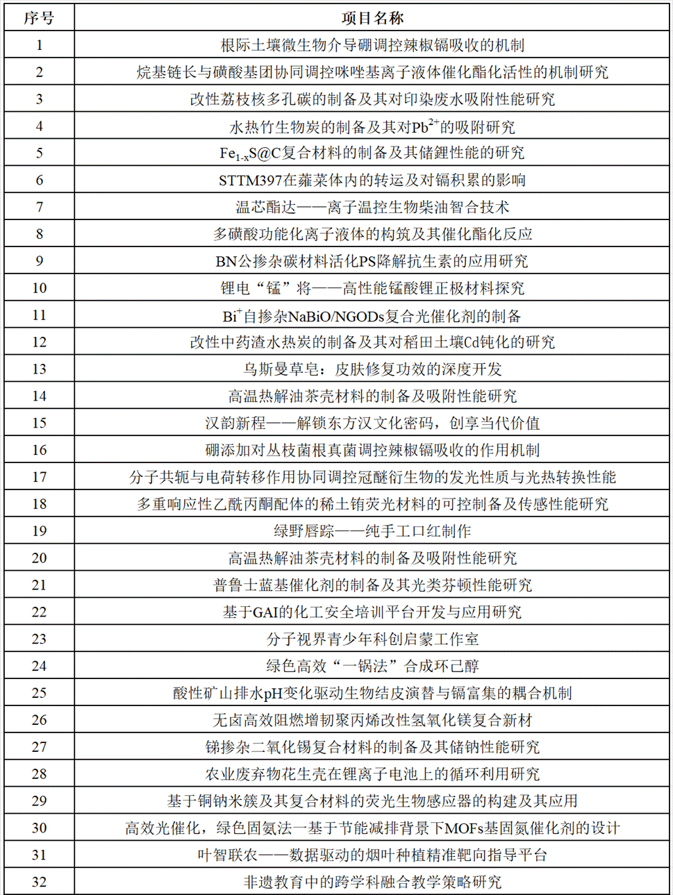 根据《关于组织开展2025年英国上市公司官网365大学生创新创业训练计划立项工作的通知》及《英国上市公司官网365大学生创新创业训练计划项目及经费管理办法》(湖工教〔2020〕4号)相关要求,经个人申请、导师审核、学院审核等环节,现拟推荐“根际土壤微生物介导硼调控辣椒镉吸收的机制”等32项项目作为2025年英国上市公司官网365大学生创新创业训练计划的立项项目。