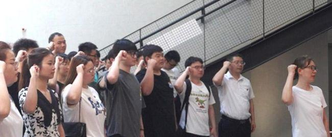 随后蔡玲带领新入党学生进行宣誓,在场的所有党员重温入党誓词,激励大家不忘初心、砥砺前行。