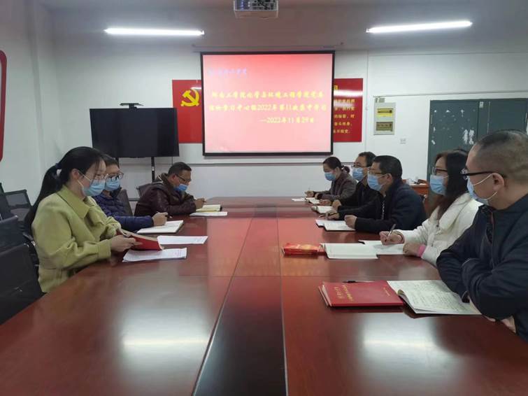 1129日下午,2022年化学与环境工程学院党委理论学习中心组第11次集中学习在1310举行。会议由学院党委书记周立同志主持,院党委理论学习中心组全体成员参加。