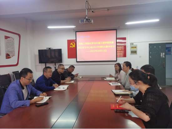 10月13日下午,2022年化学与环境工程学院党委理论学习中心组第9次集中学习在1310举行。会议由学院党委书记周立同志主持,院党委理论学习中心组全体成员参加。