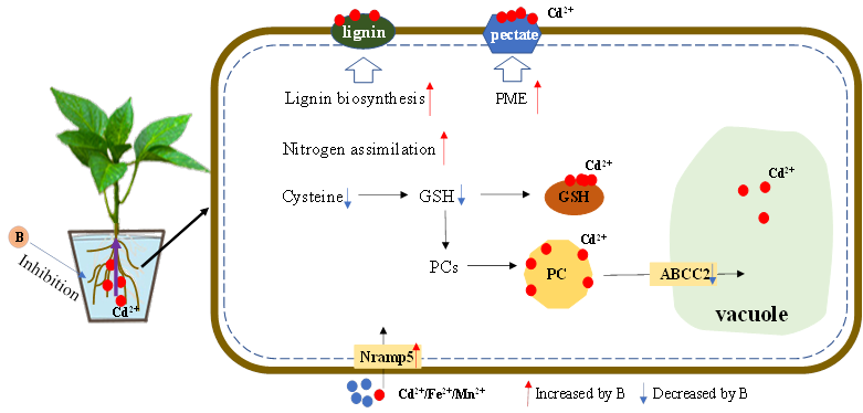 硼是植物正常生长发育所必需的微量元素。学术界认为,硼在维持植物细胞壁结构和功能的完整性方面必不可少。该研究不仅证实了硼对细胞壁合成和固定镉的重要性,而且发现硼可调控辣椒抗氧化防御以及对镉的吸收和区隔化,还影响辣椒的氮代谢、硫代谢以及木质素的生物合成。