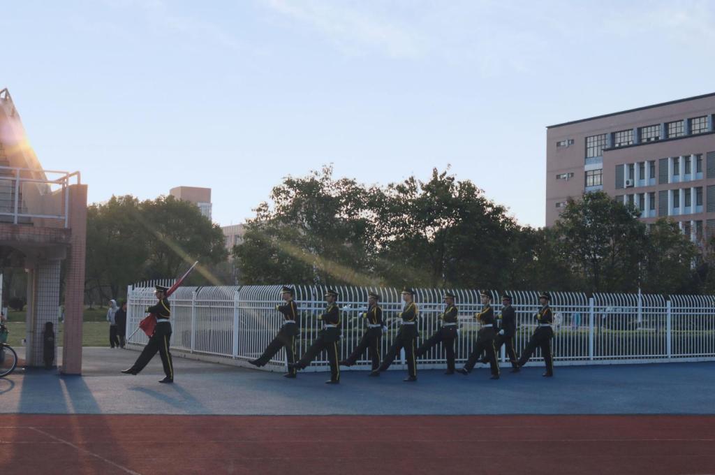 天刚破晓,旭日东升,护旗手们迎着朝阳,迈着整齐的步伐缓缓入场,雄伟庄严的国歌在北操场飘扬,五星红旗冉冉升起,大家集体行注目礼,庄严肃穆。