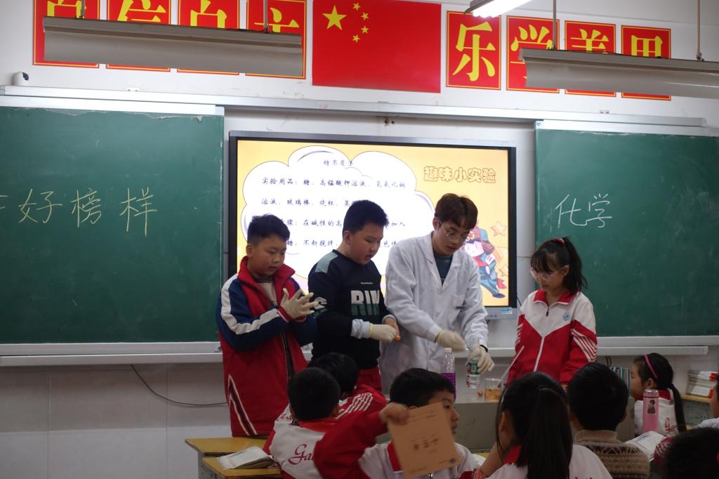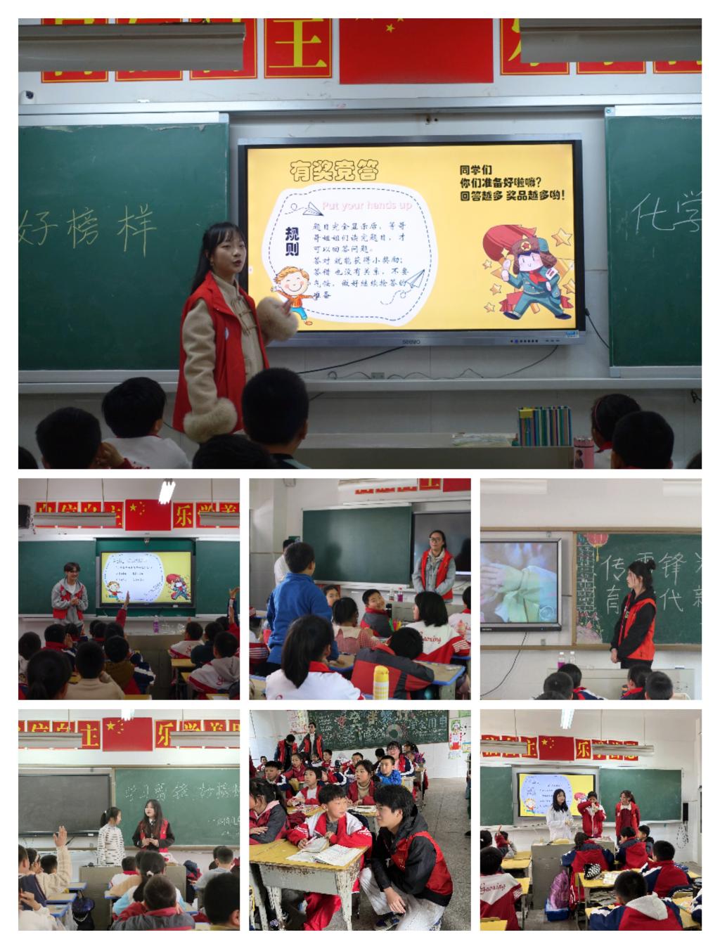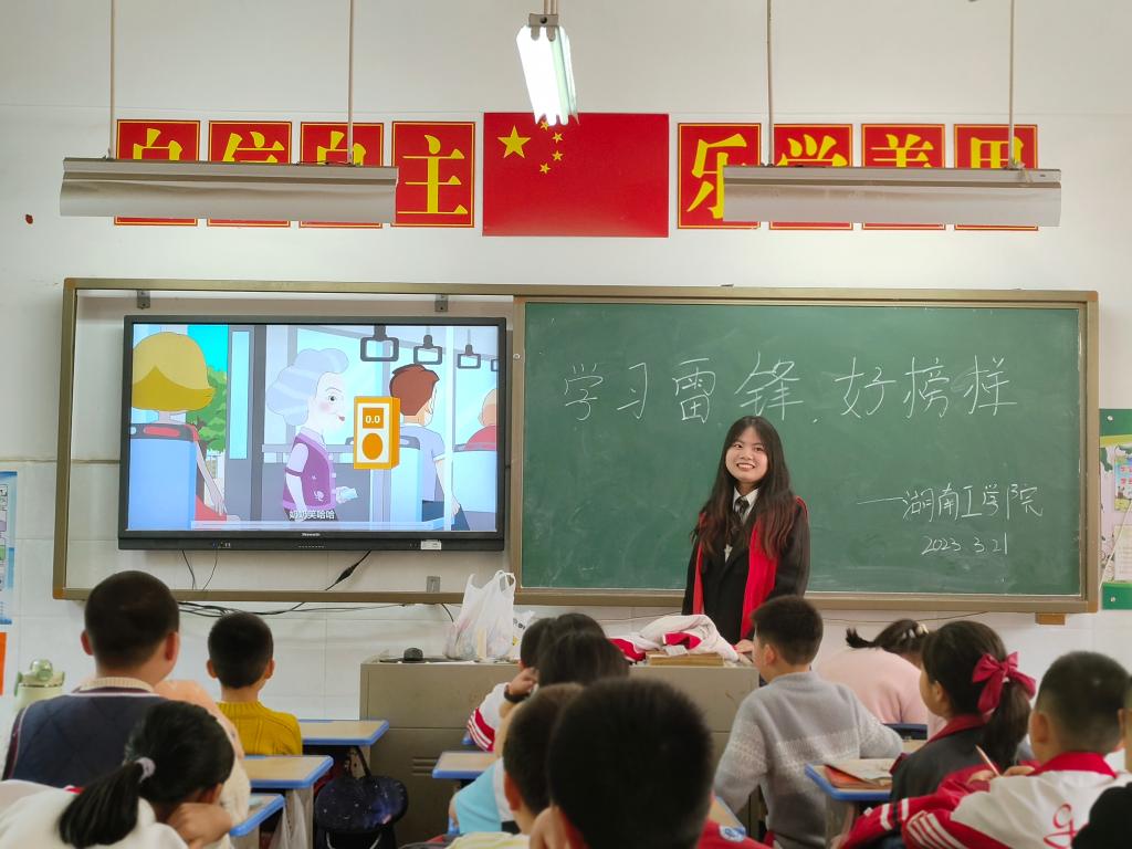 321下午,化学与环境工程学院湖小青分队志愿者小组前往衡阳市雁峰区高兴小学欧水岭校区开展学习雷锋精神,建设生态文明志愿服务我院35名“湖小青”该校五年级7个班的小朋友们送上了一堂生动有趣的公益德育课。