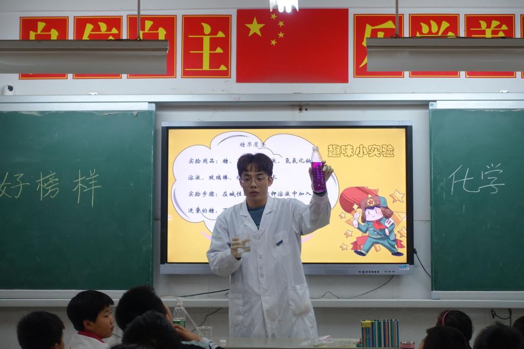 随后,“湖小青”化身成为魔术师,通过神奇的变色趣味小实验,让小朋友们感受到了化学独有的魅力,他们个个争先恐后的想要上台当一回小小魔术师。