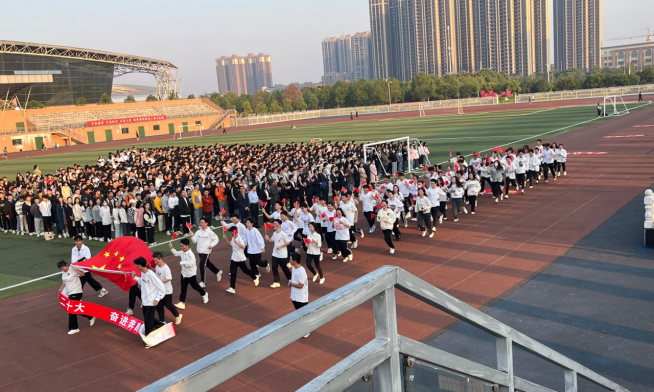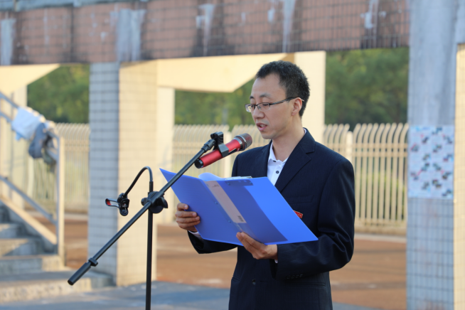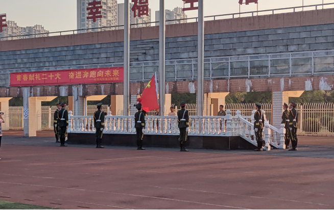 10月17日上午7点,化学与环境工程学院在北运动场举行了以“青春献礼二十大,奋进奔跑向未来”为主题的升旗仪式。院党委书记周立,院长辛俊亮,党委副书记蔡玲,副院长黄俊歆,副院长刘宁,组织员谭斌,教科办主任刘赛,全体辅导员及新生班主任老师出席,全体学生参加。本次升旗仪式由学工办主任兼分团委书记陈凌霄主持。