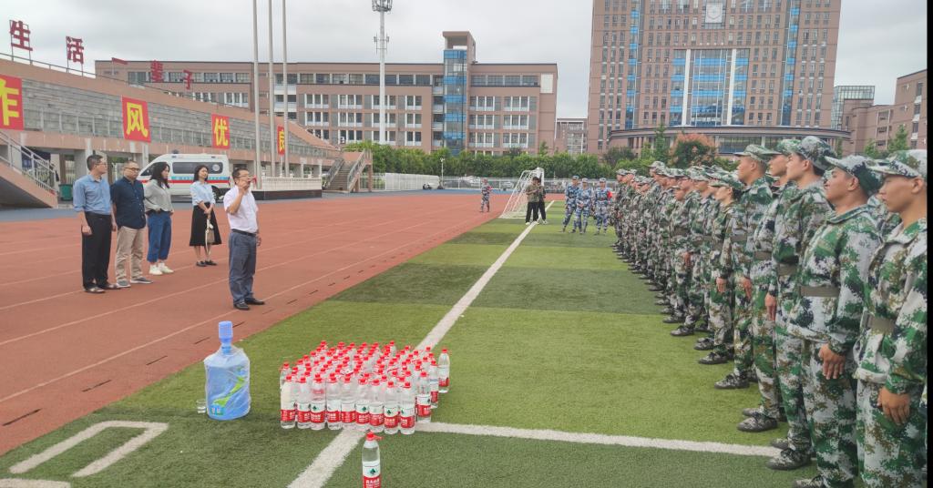 在北运动场上,新生们身着统一的军训服装,正在接受严格的训练。周立带领学院领导老师亲切地与新生们交流,详细了解他们的军训情况,他代表化学与环境工程学院全体教职工向新生们致以最热烈的欢迎和最诚挚的问候。他表示,高校承载着为党育人、为国育才的重任,军训是大学生活中不可或缺的一部分,是锤炼意志、提升自我的重要途径,也是培养大学生爱国、爱校情感的重要方式。他鼓励新生们要勇于面对挑战,以最好的状态投入到军训中,努力提高自己的综合素质。同时,他强调军训虽然重要,但安全始终是第一位的。学院高度重视学生的安全工作,新生们一定要严格遵守军训纪律,听从教官的指挥,注意安全防范,学院将竭诚为新生服务,确保军训期间的安全。最后,他向辛勤付出的全体教官、老师、新生班连助表示衷心的感谢,并预祝新生军训圆满结束。