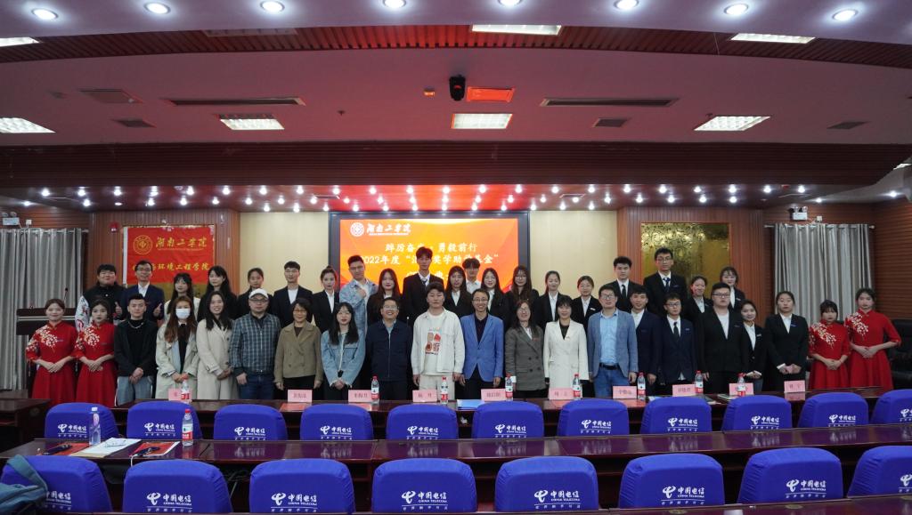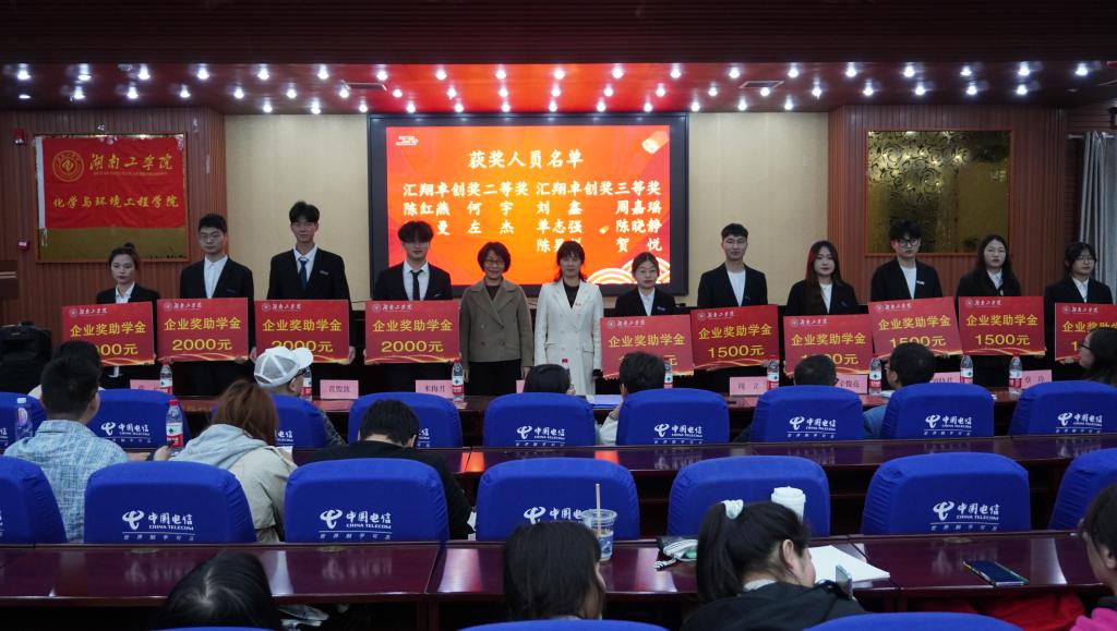 4月24日晚7点,化学与环境工程学院2022年度“汇翔奖学助学基金”颁奖典礼在蔡伦报告厅隆重举行。浙江汇翔新材料科技股份有限公司行政总经理魏臣阳、人事主管杨丹、英国上市公司官网365基金会主任米梅月、校友联络中心副主任罗晓君、化学与环境工程学院党委书记周立、院长辛俊亮、副书记蔡玲、副院长黄俊歆、副院长刘宁及全体辅导员老师出席,“汇翔奖学助学基金”受奖助学生、学院学生代表参加。