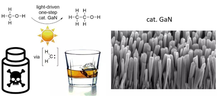 近日有人发明了一种催化剂(氮化镓做的,阵列状,含少量镁元素),只要用紫外光照一照,就能把甲醇变成乙醇。当然,该技术不能用于降低工业酒精中的甲醇含量,因为乙醇也会被催化成其他产物。所以其目的并不是为了造出更安全的酒精饮品,而是把甲醇变成更安全的燃料。不过话说回来,如果有一种催化剂只对甲醇起作用,那将有巨大的应用前景。