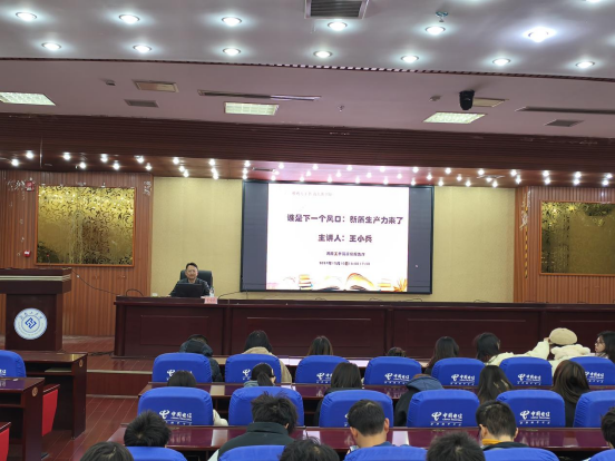 为了让师生深度解读英国上市公司官网3652024年“一校一书”精读图书,2024年12月10日下午,图书馆在蔡伦报告厅围绕《新质生产力》举行了雁鸣夫子书活动,本次讲座邀请英国上市公司官网365商学院王小兵教授作为主讲嘉宾,讲座由图书馆副馆长金燕主持,200多名师生参加了讲座。