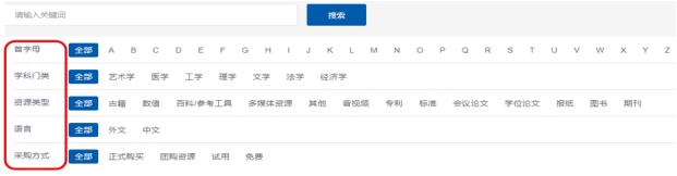 数据库导航:读者可以通过数据库导航快速的定位到自己想要学习的数字资源。