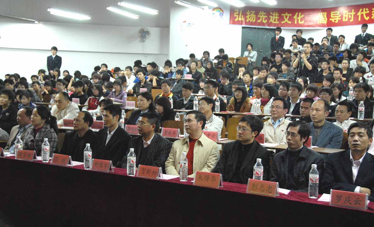 4月22日,我院计算机与信息科学系第四届计算机科技文化节开幕式在酃湖校区3号楼309教室隆重举行。本届科技文化节以“优化精品活动,提升学生素质,拓宽学习领域,实现教学共赢”为主题,旨在通过丰富多彩的校园科技文化活动,培养大学生的科技创新意识和营造浓厚的校园科技文化氛围。副院长刘俊学,中国移动衡阳分公司副总经理贺新初,学工部正副部长、党委宣传统战部负责人,计算机与信息科学系党政领导、教研室主任及各系部学生代表共300余人出席了开幕式。