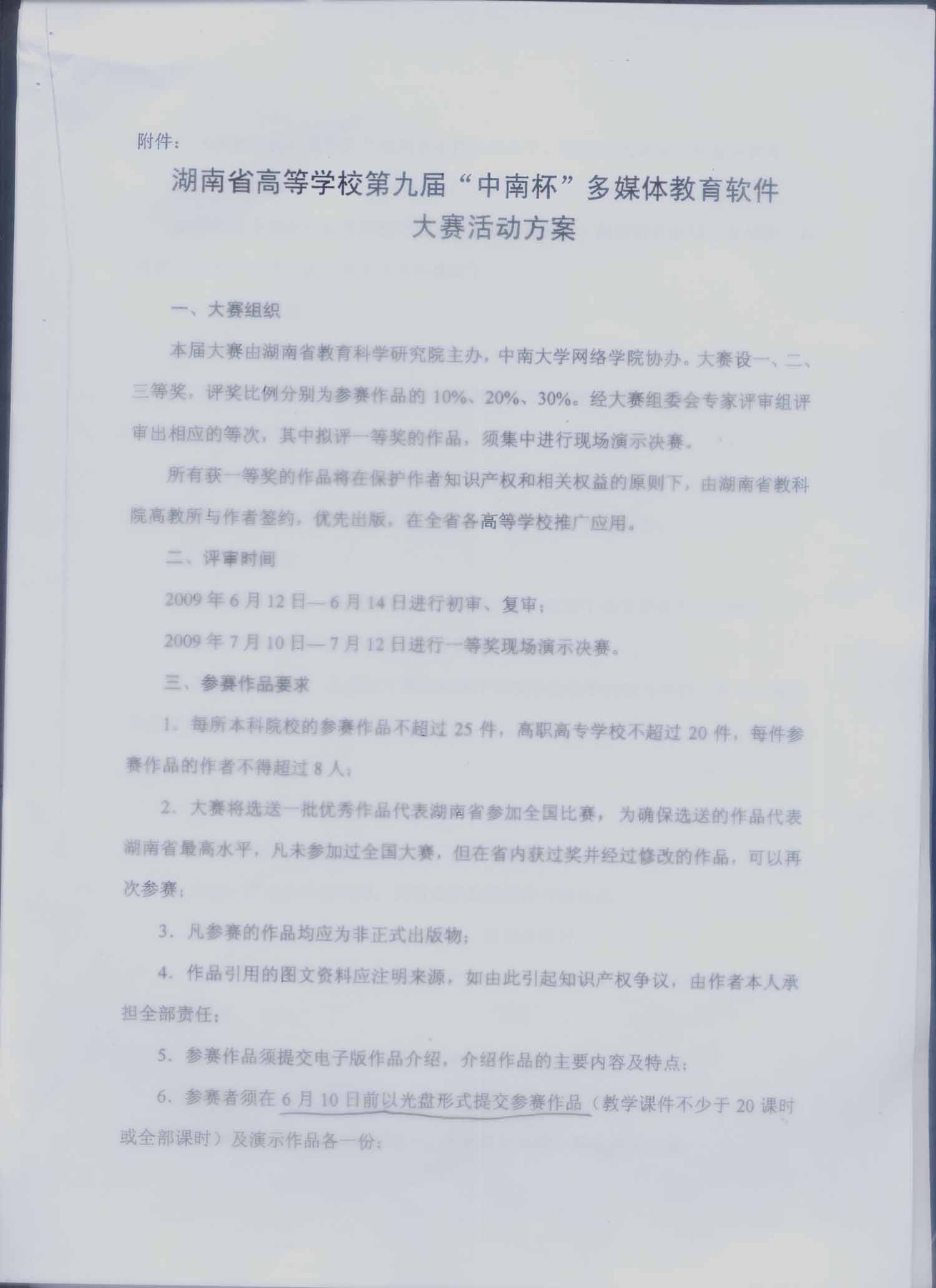 关于湖南省高等院校“中南杯”多媒体软件大赛
