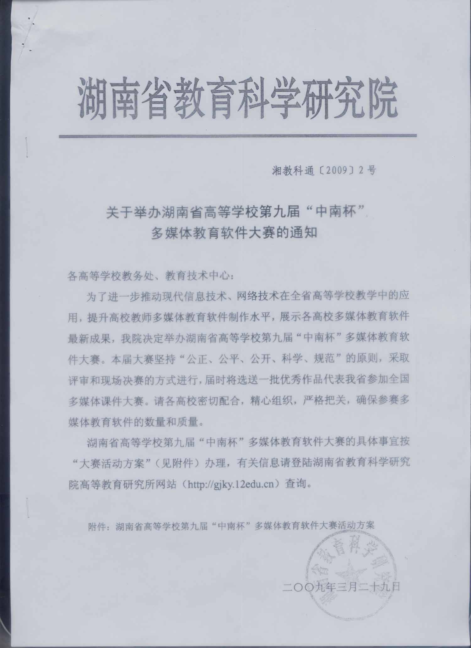 转发“关于湖南省高等院校‘中南杯’多媒体软件大赛”的通知