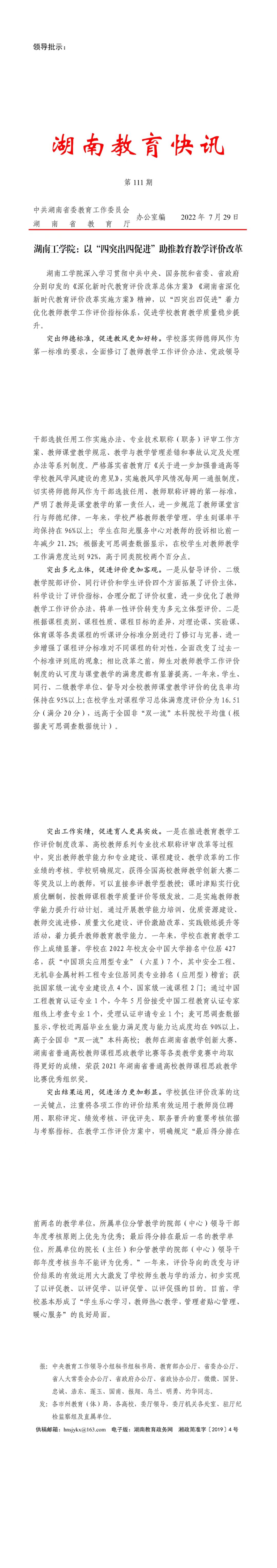 湖南教育快讯刊登介绍英国上市公司官网365教育教学评价改革经验文章——英国上市公司官网365:以“四突出四促进”助推教育教学评价改革