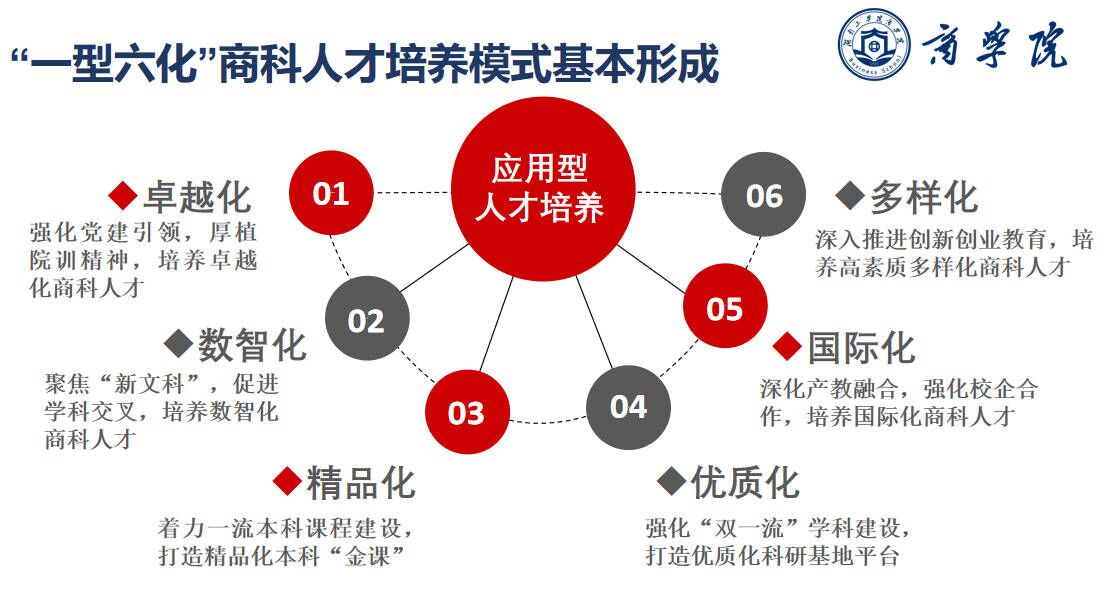 二是“一型六化”商科人才培养模式基本形成。聚焦卓越化、数智化、精品化、优质化、国际化和多样化,培养高素质数智商科应用型人才。