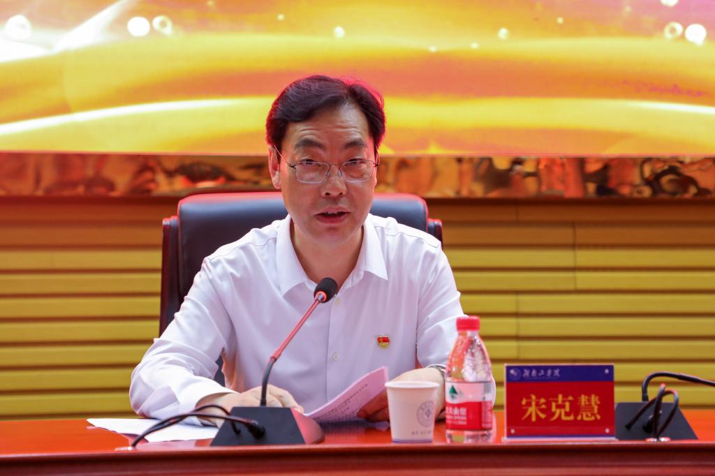 就紧紧抓住根本任务,高标准高质量开展好主题教育。宋克慧强调,要按照党中央统一部署,坚持学思用贯通、知信行统一,把习近平新时代中国特色社会主义思想转化为坚定理想、锤炼党性和指导实践、推动工作的强大力量,使全党始终保持统一的思想、坚定的意志、协调的行动、强大的战斗力,努力在以学铸魂、以学增智、以学正风、以学促干方面取得实实在在的成效。牢牢把握“凝心铸魂筑牢根本,锤炼品格强化忠诚,实干担当促进发展,践行宗旨为民造福,廉洁奉公树立新风”的目标任务。