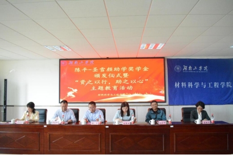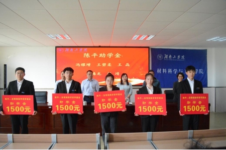 第二届陈平圣雪颜助学奖学金颁发仪式上。材料科学与工程学院党委书记刘赢时感谢陈平校友的爱心助学希望同学们自强不息,坚定信念;努力学习,早日成才;传递爱心,回报社会,把个人微薄之力汇入时代发展潮流之中。