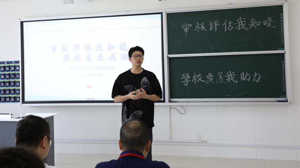 518日上午,校长曹执令深入联系的安全与管理工程学院安全工程2104班参加“审核评估我知晓,学校发展我助力”主题班会,班会由班级辅导员傅娜老师主持。