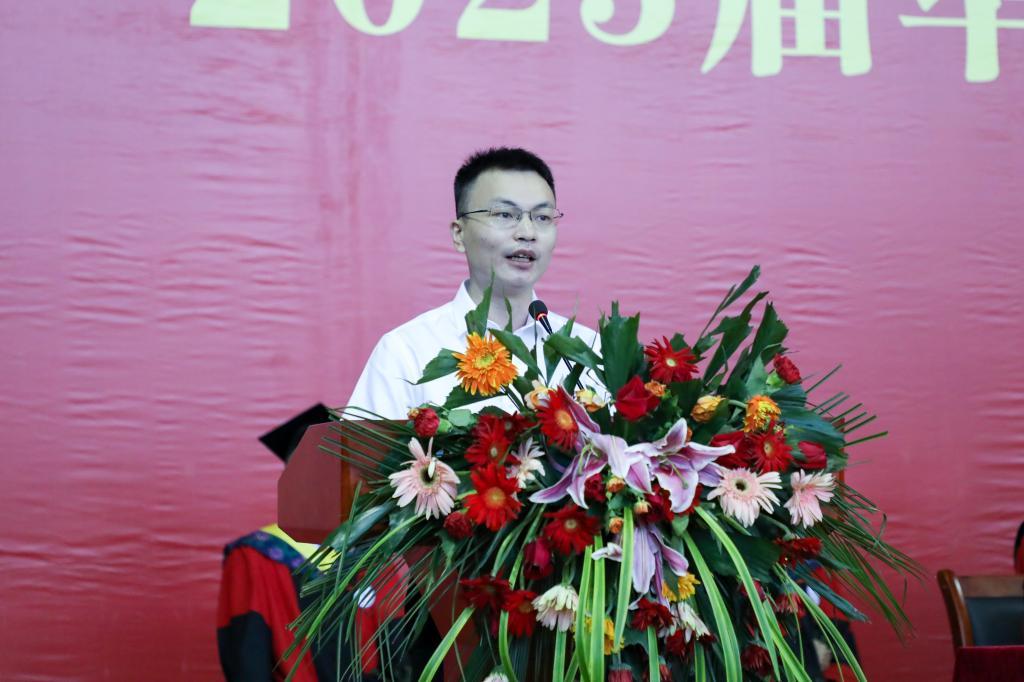 优秀毕业生代表、商学院杜菁菁,优秀校友代表、材料科学与工程学院2018届校友蔡铮莹,教师代表、智能制造与机械工程学院曹羽鑫分别在典礼上发言。