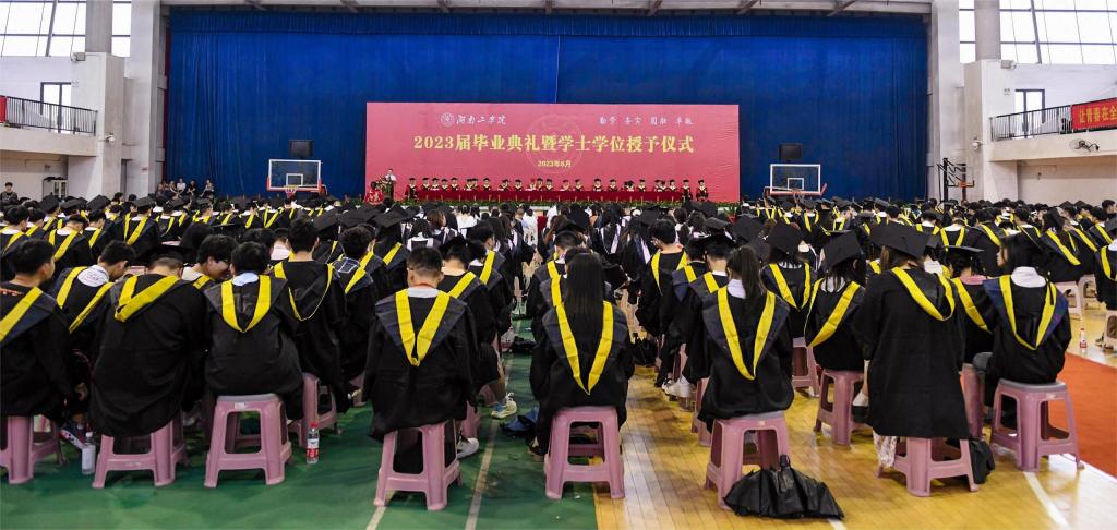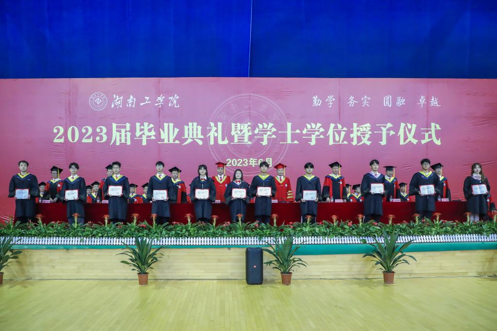 党委委员、副校长刘升学宣读学士学位文件。党委委员袁勤宣读优秀毕业生表彰文件。全体校领导为湖南省普通高校优秀毕业生代表颁发荣誉证书。