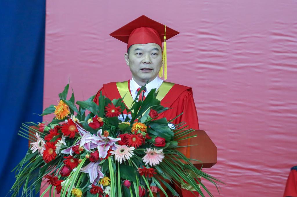 校党委书记宋克慧主持典礼,党委副书记、校长曹执令致毕业贺词,全体校领导、校学位评定委员会成员、相关职能部门负责人、教师代表、优秀校友代表、毕业生代表、家长代表出席了典礼。