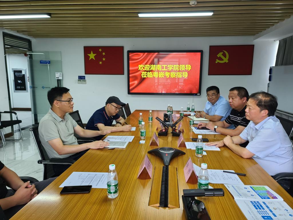在广州粤嵌通信科技股份有限公司,公司总经理邓人铭从产品研发、企业服务、人才培养、人才输出、院校服务、产教融合等方面介绍了公司情况。双方就人才培训与就业、专业共建、实训室建设、产业学院、基地建设、教学资源共建共享等方面进行了深入交流与探讨。