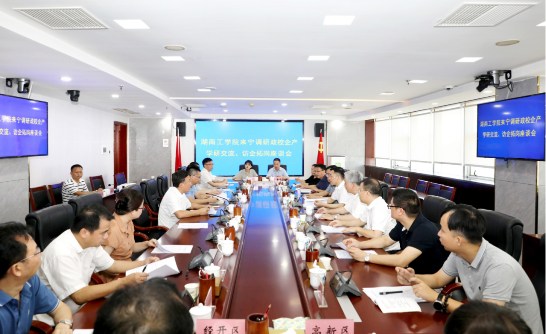 随后,在宁乡市政府举行了政校企三方座谈会,宁乡市委副书记、市长黄滔出席了座谈会,并母校领导老师一行到宁乡考察交流表示热烈欢迎座谈会上,宁乡科学技术局、人力资源和社会保障局与应急管理局等职能部门负责人就全市产学研工作推进、人才引培工作、落实党中央就业工作部署情况进行交流发言;宁乡经开区宁乡高新区负责人就园区产业发展规划、关键产业技术创新与高层次人才需求等情况进行分享;楚天科技、中伟新能源、邦普循环科技、三一重起、星邦智能、中科星城石墨、弗迪电池、巴斯夫杉杉、瑞捷机械、磐龙消防等企业负责人与校方一行就企业发展中关键技术研发与核心岗位专业人才需求进行交流。