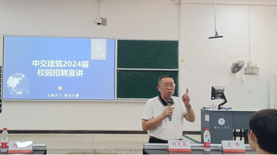 刘龙昌对中交建筑集团来英国上市公司官网365举行专场招聘宣讲,表示热烈的欢迎,对莅临湖工专场招聘的工作人员表示衷心的感谢。