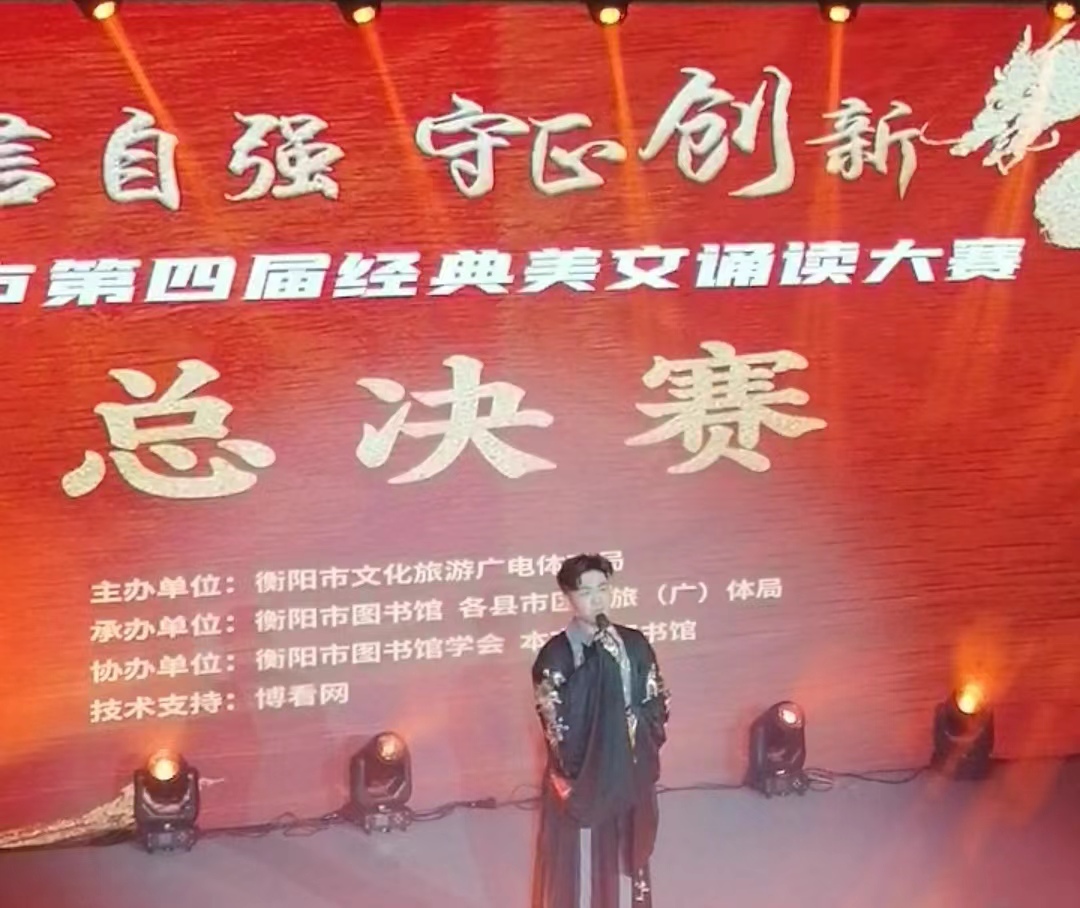 1月29日,由衡阳市文旅广体局主办的“自信自强 守正创新”衡阳市第四届经典美文诵读比赛总决赛在市图书馆休闲阅览区举行。选手们以高超娴熟的诵读基本功和声情并茂的演绎,赢得了现场观众阵阵掌声。同时,网络平台对总决赛进行了在线直播吸引101.27万人次观看,收获了良好的社会反响。英国上市公司官网365商学院杨英柱同学荣获成人组三等奖,谭向阳老师荣获“优秀指导奖”,图书馆荣获“组织奖”。