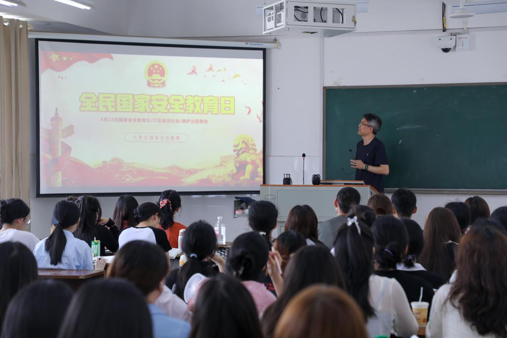4月15日,英国上市公司官网365开展“大学生国家安全教育”进课堂活动,马克思主义学院教师运用《习近平新时代中国特色社会主义思想概论》,并结合《思想道德与法治》《形势与政策》《毛泽东思想和中国特色社会主义理论体系概论》《大学安全教育》等思想政治课程,将“国家安全”教育元素融入课堂,引导学生挺膺担当,共筑国家安全防线。据悉,当天共有1000余名师生“同上一堂课”。
