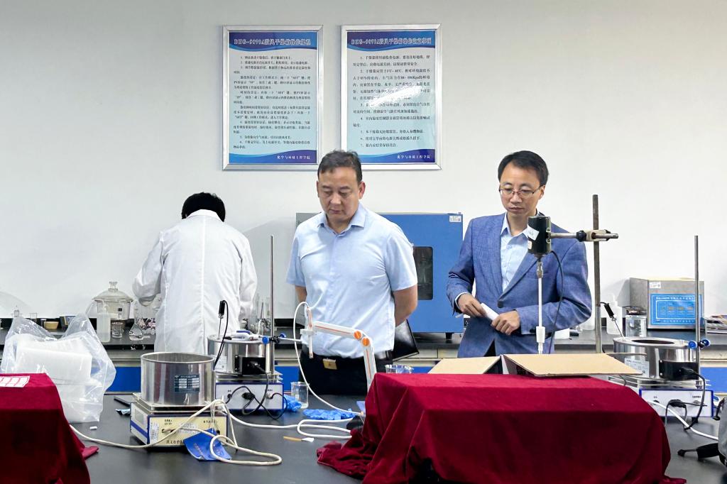 曾广胜一行实地参观了化学与环境工程学院楼栋文化墙,考察了电极材料高温处理、锂电池制备与组装、趣味化学实验等实验室、科普室、体验室,并与实验室成员进行交流,深入了解学院的定位、研究方向、近年来的代表性科研成果及实验室安全及卫生管理情况。他要求学院要加强实验室安全和规范管理,严格按照安全标准规范,进一步完善布局,保持实验区和生活区相对独立,做好实验室清扫工作,确保实验室安全整洁。