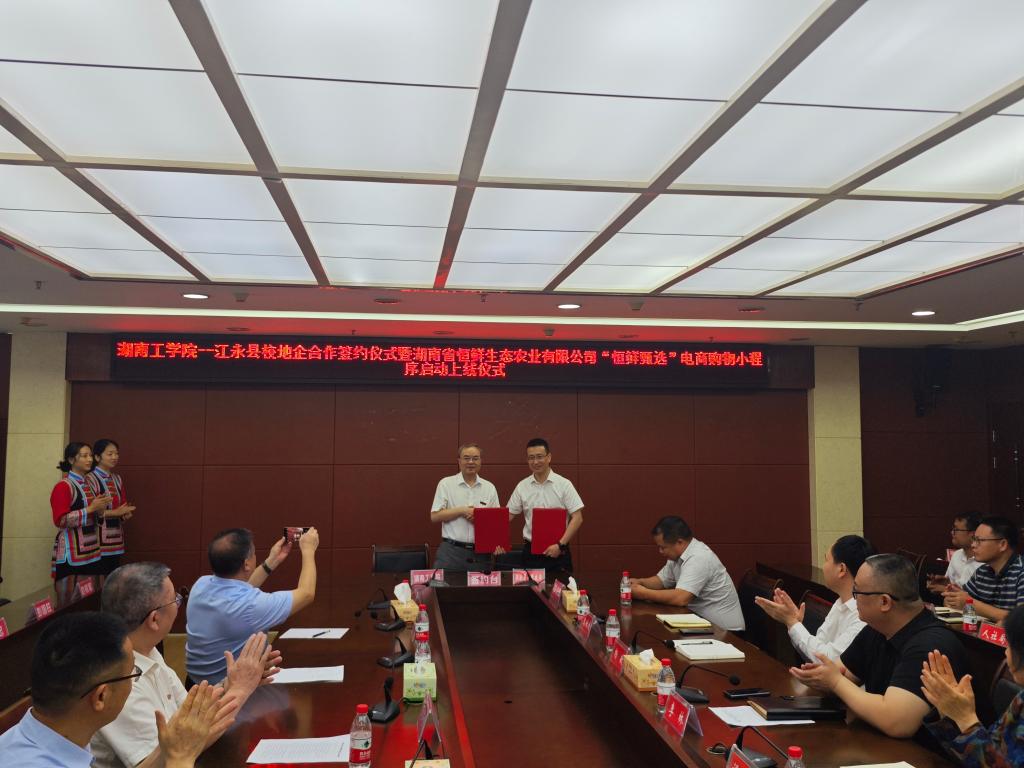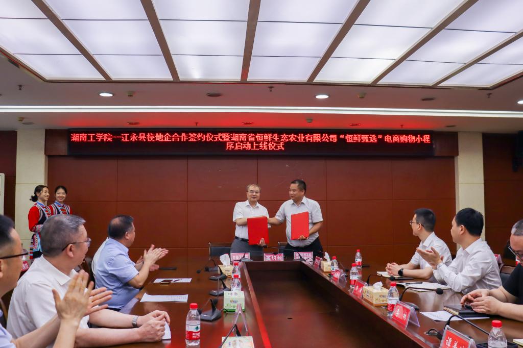 会上,何建雄与陈继康签署了校地战略合作协议,与湖南恒鲜生态农业有限公司董事长罗光德签署了校企战略合作协议。