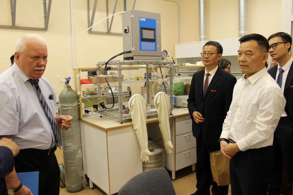 俄罗斯科学院院士向代表团介绍圣彼得堡国立技术大学实验室