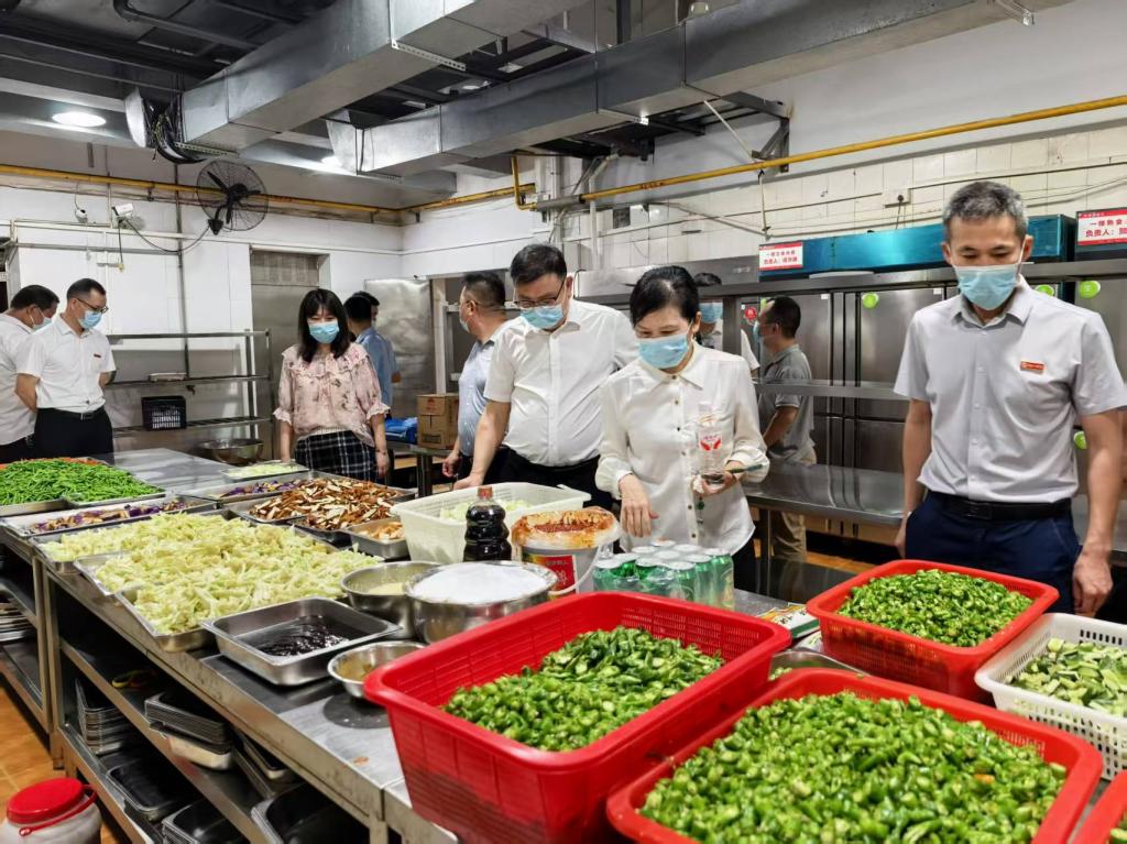 检查组深入食堂档口、操作间、加工间及仓库,对食材加工、食品留样、原材料储存等情况进行了全面核查。王艳琼对食堂前期整改工作给予充分肯定。