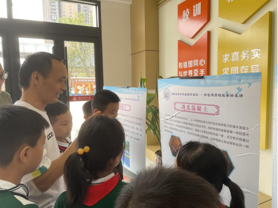 9月16日上午新型建筑研究院开展了全国科普日活动。本次科普活动的地点为可津小学,主题是“科普绿色建材 共建三高四新”。活动由娄晓明院长全程策划,曾盛渠副院长带队实施,张涛博士负责精选科普内容,张庭老师负责后勤保障,研究院全体同志出谋划策。曾盛渠副院长、顾问胡波年教授、首席专家李坦平教授、实验中心主任欧丽娟教授以及无机非教研室主任熊鑫博士现场讲解。可津小学陈宁校长和教导主任吴雅沁对此次科普活动表示热烈欢迎,并强烈要求今后能常态化此类活动,给孩子们更多接触科学的机会。