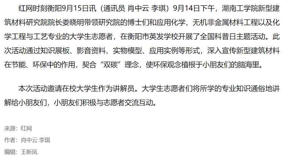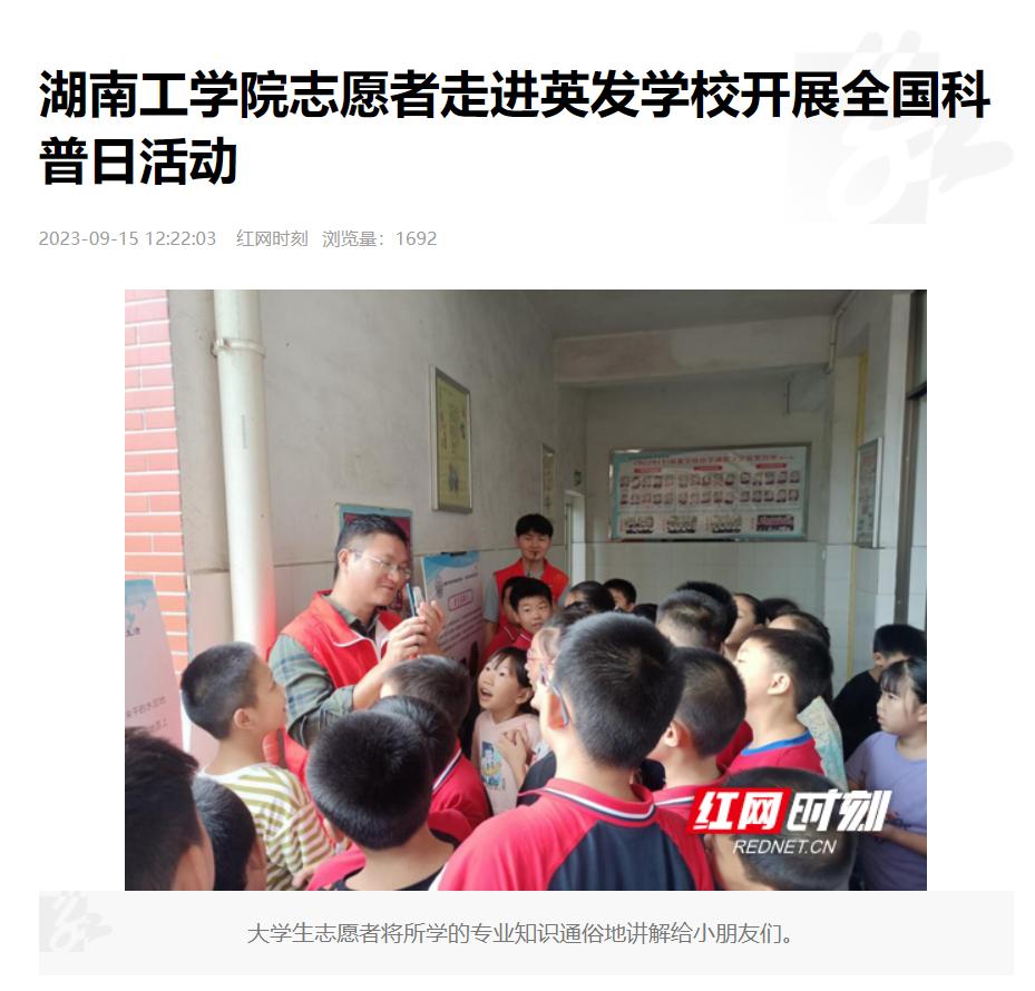 红网时刻:英国上市公司官网365志愿者走进英发学校开展全国科普日活动