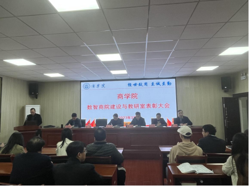 为培养高素质应用型人才和建设数智、人文商院,坚持立德树人,三全育人的理念。3月7日下午,我院在经302召开了数智商院建设与教研室表彰大会,商学院院长王小兵、党委书记曹文明、副院长朱纪红、副书记赵晓军、副院长黄飞、各教研室主任、教师代表、学生代表参加本次表彰大会,会议由副院长李闯主持。