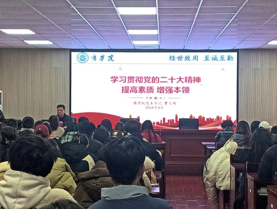 3月1日下午,我院在经管楼302召开商学院团委学生会例会暨团学干部培训。商学院党委书记曹文明、党委副书记赵晓军、学工办主任段思遥、全体辅导员及团委学生会干部参加本次会议。会议由党委副书记赵晓军主持。