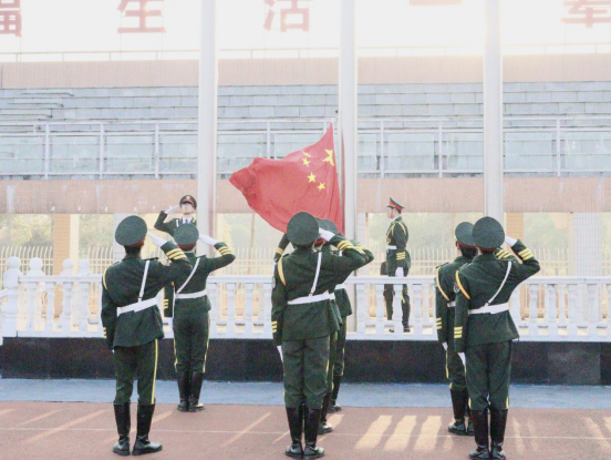 全体师生庄严肃立,目光紧紧追随着国旗,齐声高唱国歌,心中满溢着对祖国的无限自豪与热爱。