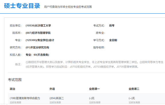 以寻找长沙理工大学会计专硕相关信息为例,操作流程如下: