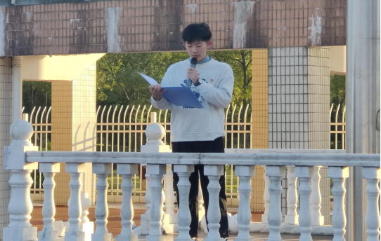 在庄严的五星红旗下,酒店管理1802班文涛作为学生代表发言,号召同学们铭记历史,不忘艰苦奋斗、追赶超越的岁月。回望中国百年奋斗历程,中国共产党团结带领中国人民,矢志践行初心使命。站在两个一百年历史交汇点,作为新时代新青年的我们,既要充满信心,也要居安思危。学习党史,做到学史明理、学史增信、学史崇德、学史力行,努力成为社会主义事业合格建设者和可靠接班人。
