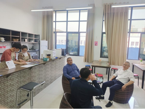 校党委副书记张平和聂敏锋先生还参观了商学院酒店管理专业咖啡酒水实验室,并对我院学生创业项目——“咖啡饮品屋”项目进行了现场指导。(商学院)