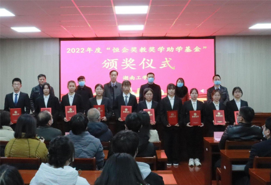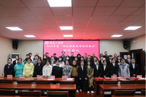 吕朝晖宣读了第二届“恒企奖教奖学助学基金”获奖或获得资助的师生名单。同时她发表了热情洋溢的简短讲话,认为以奖促教促学是为进一步弘扬尊师重教,激励学子努力成人成才,并引用“流水不争先,争得是滔滔不绝”鼓励同学们在美好的年华艰苦奋斗、砥砺前行,实现自己美好的梦想。