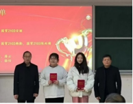 在颁奖仪式中,主持人宣布获奖成员,与会领导、教师为优秀同学颁奖并合影留恋。