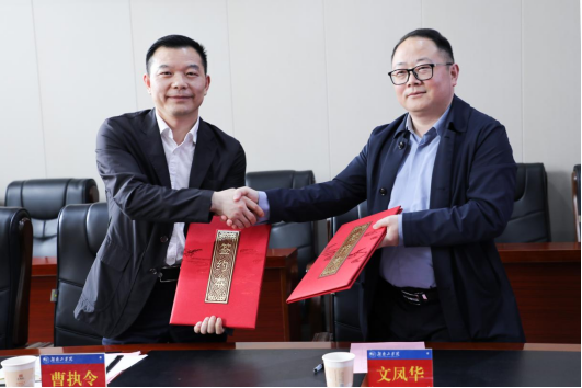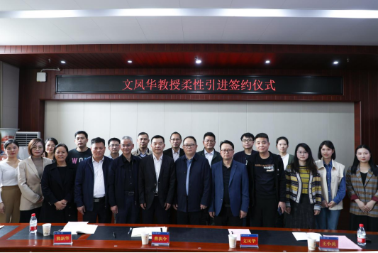 校长曹执令与文凤华教授签署柔性引进协议书并合影留念