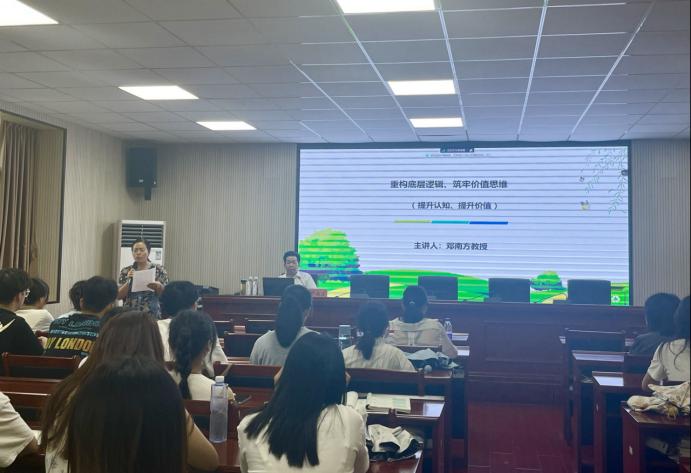 2023年9月19日下午,人民城市发展中心研究员、中国公益记录者在线企业家事业中心首席顾问、工信部智库专家、EMCC国际职业认证导师邓南方教授应邀来到我院为学院师生开展了《重构底层逻辑,筑牢价值思维》主题讲座,帮助大家学会自我经营、逐步走向优秀。讲座由副院长朱纪红主持,学院青年教师、学生代表参与此次讲座。