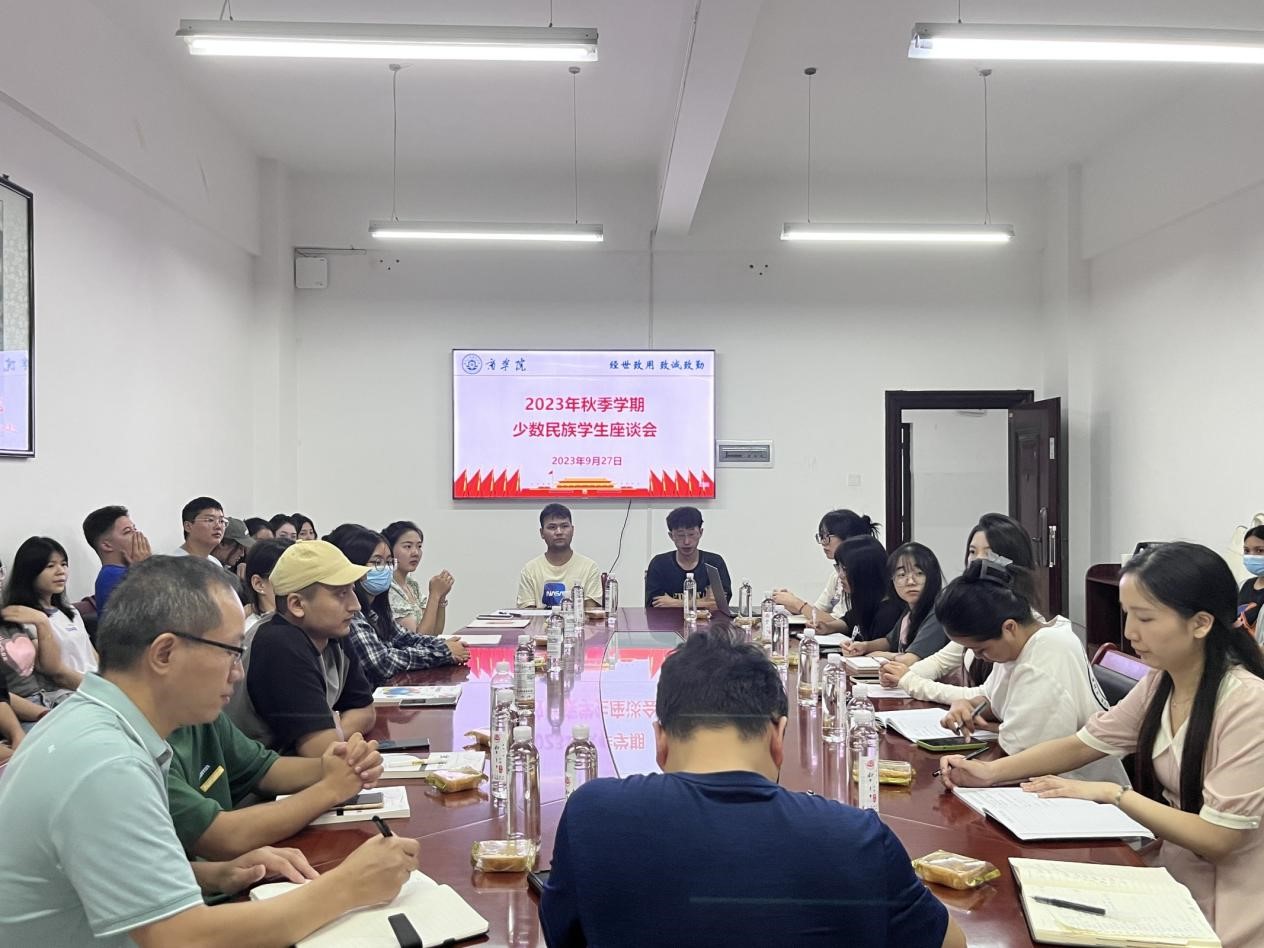 为深化民族团结进步教育,促进学院各民族学生交流交往交融,9月27日,商学院在经315召开民族学生座谈会。商学院院长王小兵、副院长李闯、党委副书记赵晓军及全体辅导员、民族学生代表参与本次会议。会议由赵晓军主持。